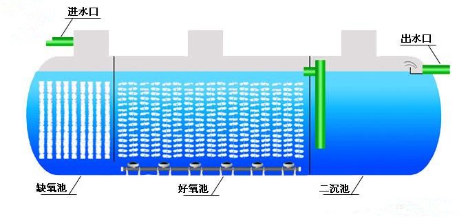 • 一體化污水處理設(shè)備 > 一體化污水處理設(shè)備是將一沉池、I、II級接觸氧化池、二沉池、污泥池集中一體的設(shè)備,并在I、II級接觸氧化池中進(jìn)行鼓風(fēng)曝氣,使接觸氧化法和活性污泥法有效的結(jié)合起來,節(jié)省了找人設(shè)計污水處理工藝和做基礎(chǔ)建設(shè)的繁瑣。